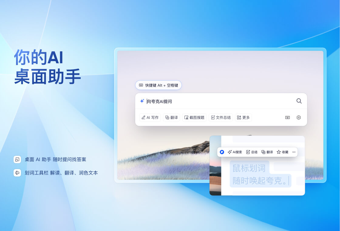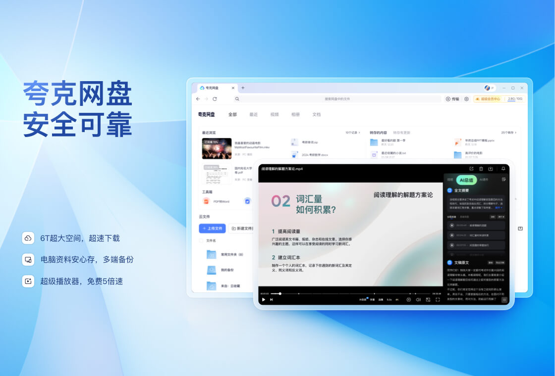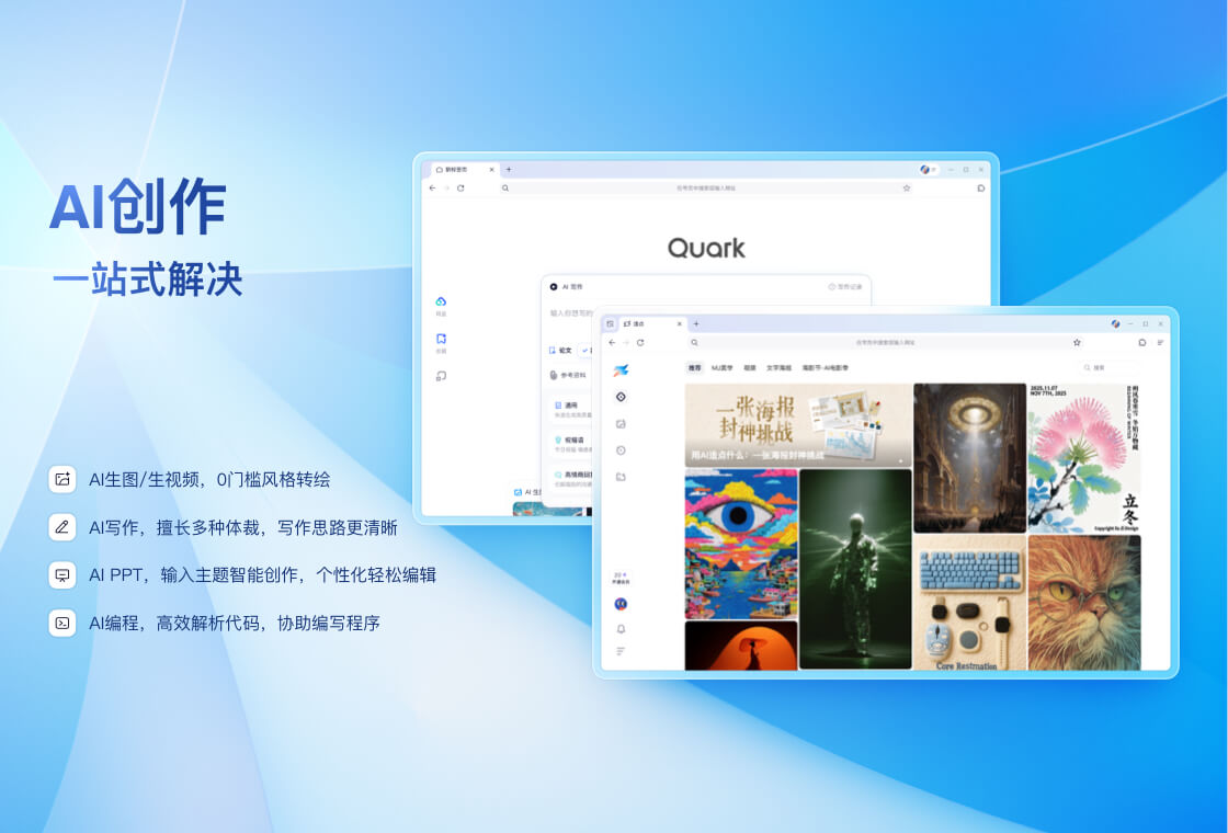 UC专注浏览器21年,推出的一款速度快、安全、好用的PC浏览器产品。支持UC网盘、书签云同步、批量问AI、云收藏等功能UC网盘功能:1. 超大空间,超速下载:普通用户享受10GB永久有限空间,SVIP用户支持6T空间,至臻会员享10T空间; 2. 在线看视频,在线娱乐神器:支持大屏高清4K观影,还有免费5倍速,支持在线字幕加载,画中画,多窗口打开方便使用; 3. 支持Office、PDF、压缩包等文件在线打开,Office文件还能支持在线编辑。4.支持批量问AI,方便对比多个AI效果