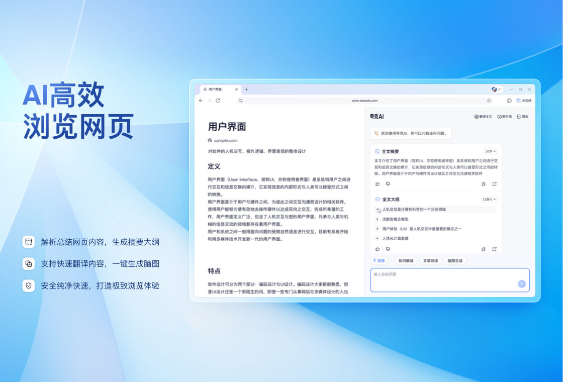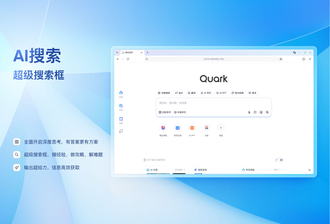 QQ浏览器是腾讯公司开发的一款极速浏览器,已升级为AI浏览器。QQ浏览器搭载混元和DeepSeek双模型,在用户浏览的过程中,提供AI能力,帮助用户高效获取信息,提升处理、生成信息的效率。还有多个AI助理,帮助完成复杂任务。