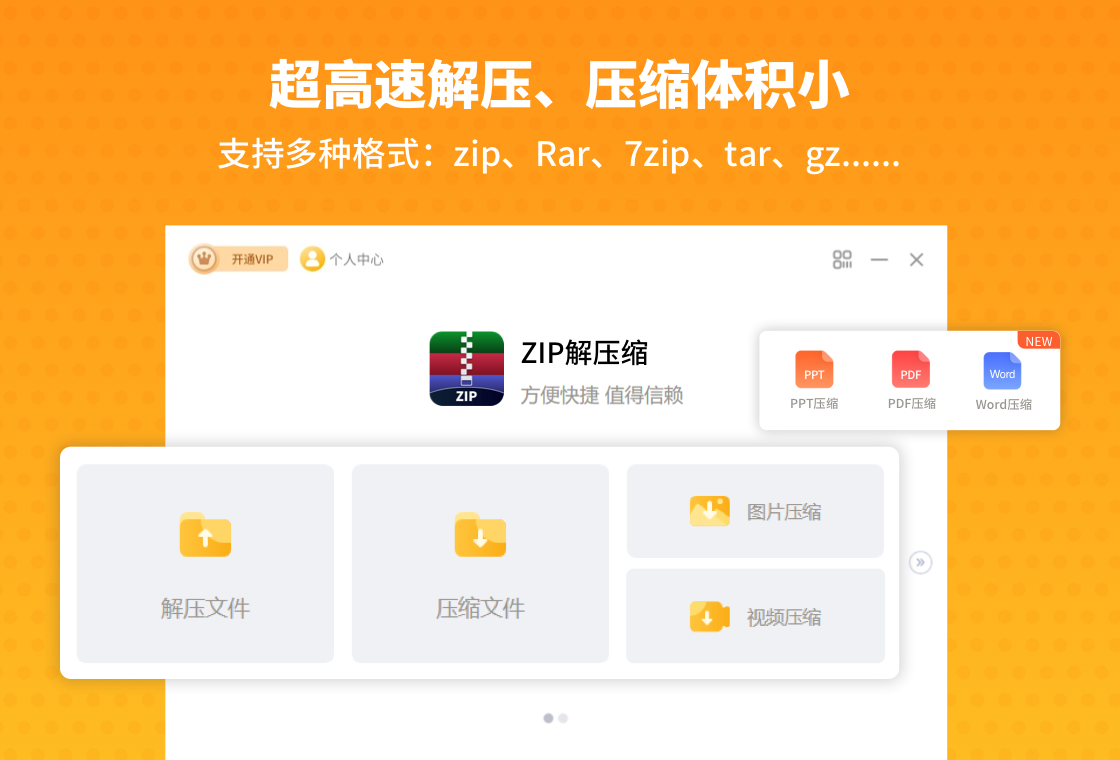 小番茄zip解压缩,是一款非常好用的解压缩工具,除了常见的文件压缩跟解压缩外,针对图片压缩,视频压缩,音频压缩,GIF压缩,PDF压缩,WORD压缩,PPT压缩,EXCEL压缩8大文件类型优化了压缩算法,大大提升特定格式的压缩效率跟压缩比,满足不同用户需求场景。软件支持解压的格式有zip、rar、7z、tar、wim、bz2、gz、xz等多种压缩包格式的解压;同时针对文件、图片、视频、音频、PDF以及日常办公文档等支持压缩成多种格式压缩包,支持设置密码,以及密码跨设备同步,方便安全,带来了非常高效便捷的使用体验,提升工作效率。